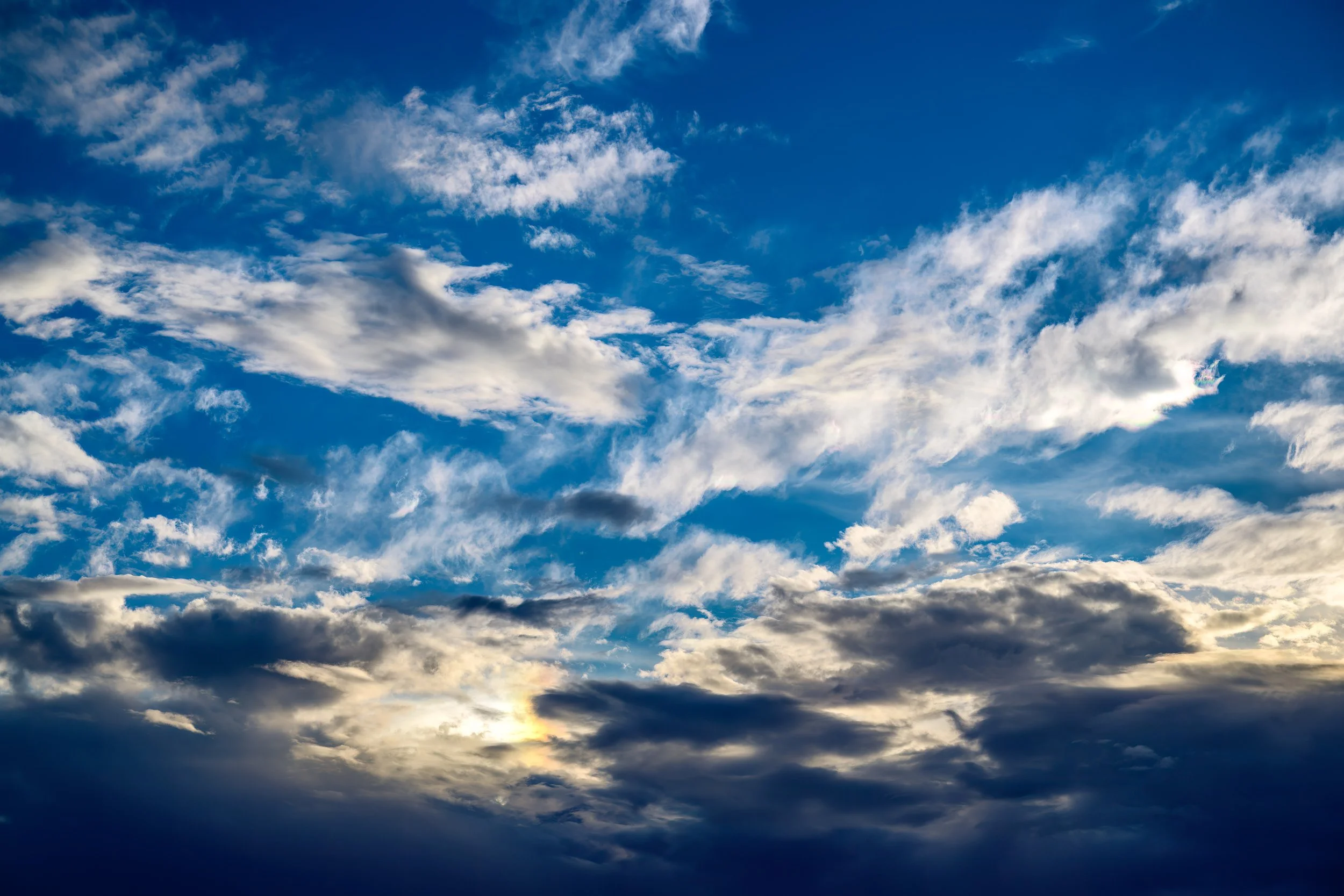 When I was downloading photos today I discovered there were some photos from a few weeks ago I hadn't yet downloaded or looked at. There were some cloud photos and sunset shots I liked. Here are a couple of the cloud shots. There's actually two sundogs in the photo, though the left one is harder to see, which is somewhat ironic because it was the left sundog that inspired me to grab my camera and take some shots. But by the time I took the shots, it wasn't as prominent.