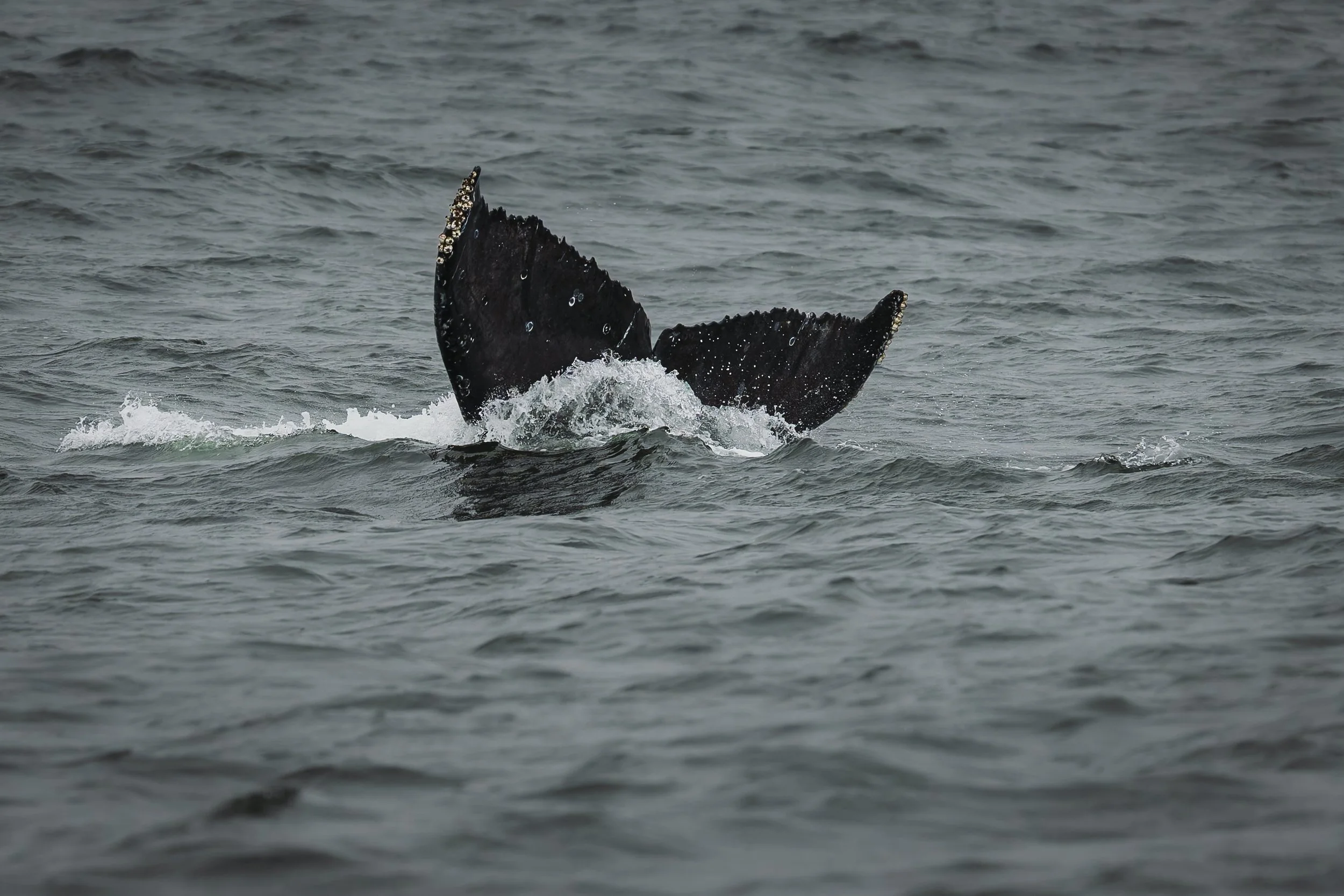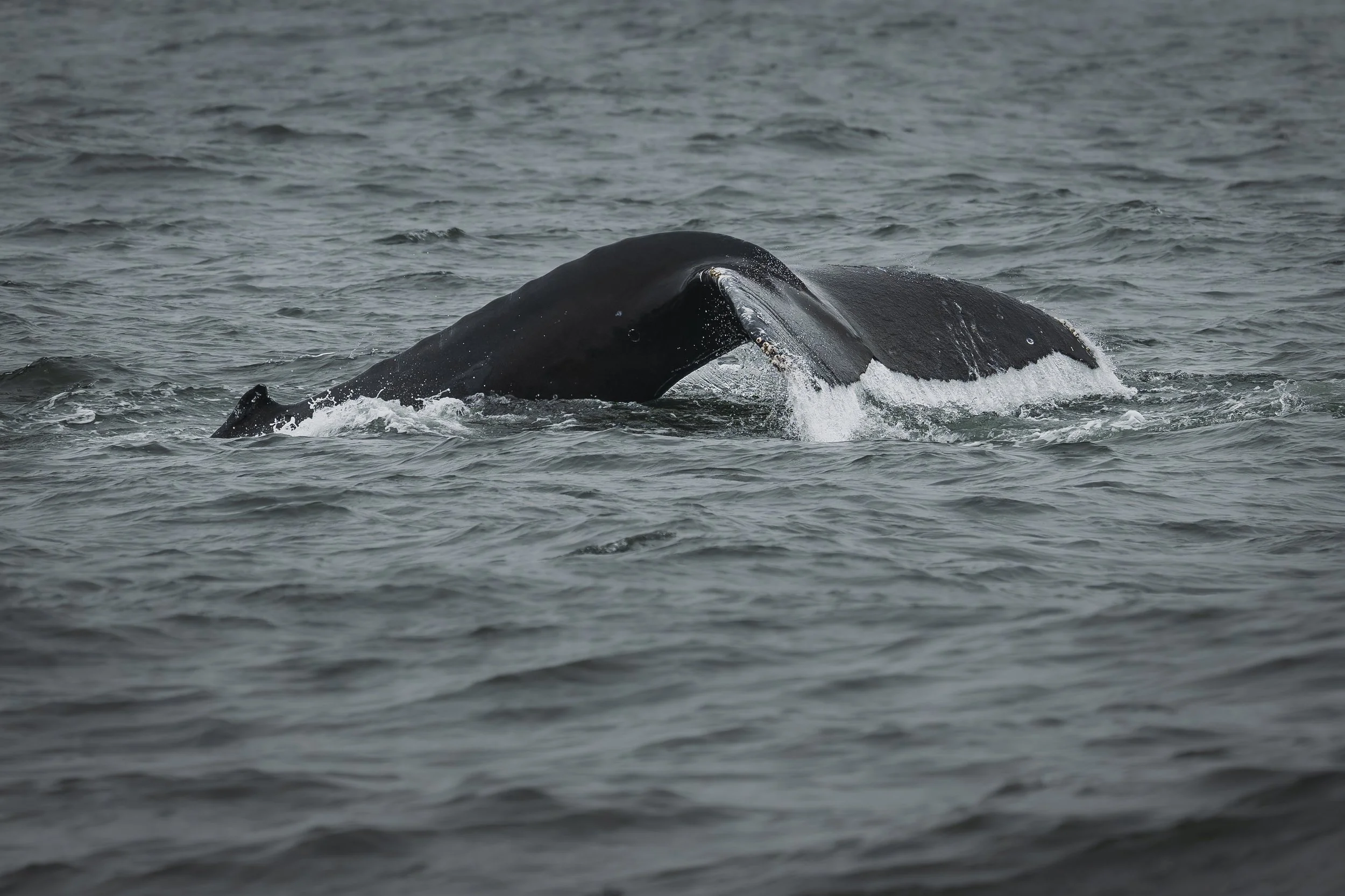 I only got ID’able fluke shots of one whale - it was the whale that was doing most of the breaching. I ran it through the “fast ID” on HappyWhale.com but it didn’t come up with a result. Admittedly the fluke doesn’t have many markings on it, but I was a little surprised. It’s possible it’s a whale that isn’t in their database yet. I’ll do a normal submission and they should be able to ID it and if it’s not in the database, they will add it.