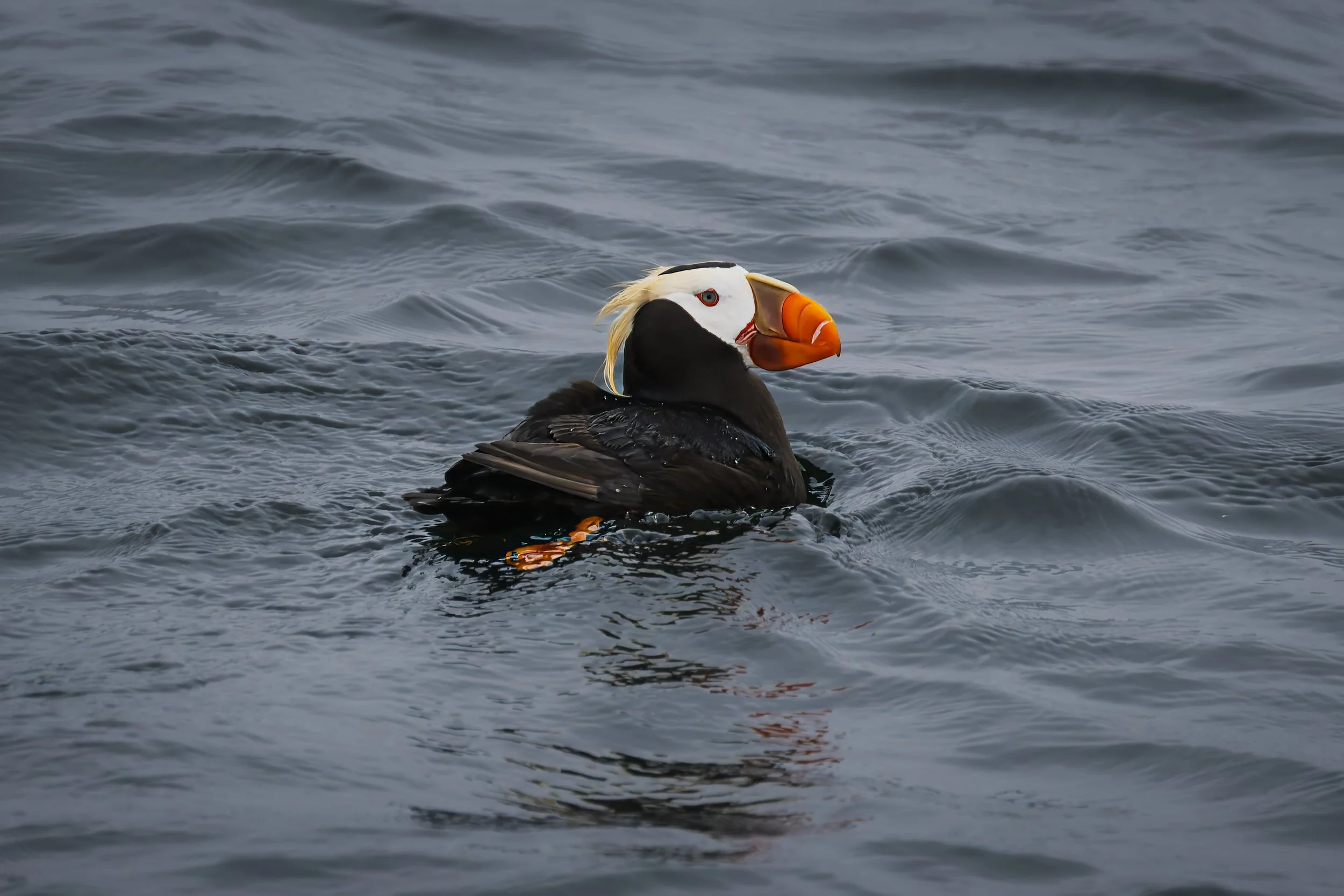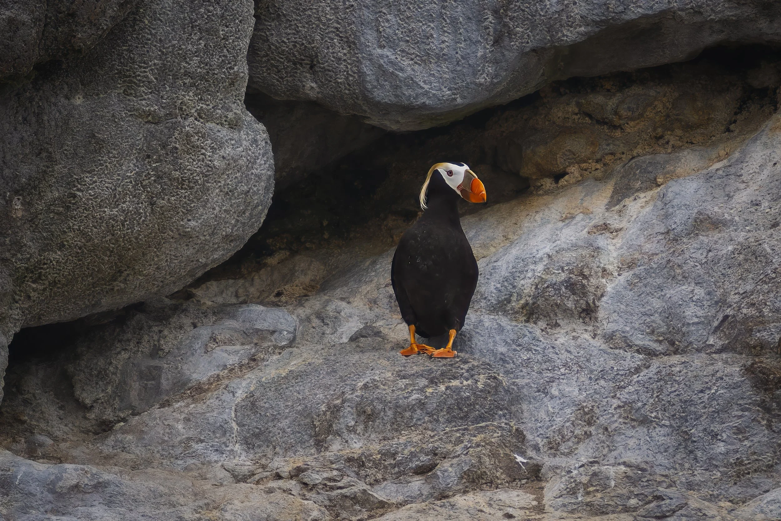I’m posting considerably more photos than I normally do. Some may suggest that I could have cut a fair bit more, and others may suggest I cut too many. Hopefully I struck a reasonable balance. As a bit of an orientation to the photos, here is a little information on how they’re organized. First and foremost, they are not in chronological order. The first five photos are basically what I picked as the highlights from the trip. Then there’s a large chunk of Humpback Whale photos. That is the only whale I got decent shots of. I did get some shots of a Gray Whale, but none were good enough to post. The last whale shot is there for fun - it’s what happens when you had been photographing Harbor Seals at a distance with a 600mm lens and a whale surfaces right next to the boat. After the whales are some shots of a Mola Mola, though you’d be forgiven for not recognizing it, given it was underwater and I was not. One of our naturalists got some underwater footage with a GoPro on a stick. Next comes the Tufted Puffins - very cool birds. Then Fur Seals, Pigeon Guillemots, Harbor Seals, a baby Pigeon Guillemot, Common Murres, Brandt’s Cormorant, Stellar Sea Lions, and then some shots of the islands, a few of the researchers, some shots of the boat ride and a kite surfer we saw in the bay as we returned to port.