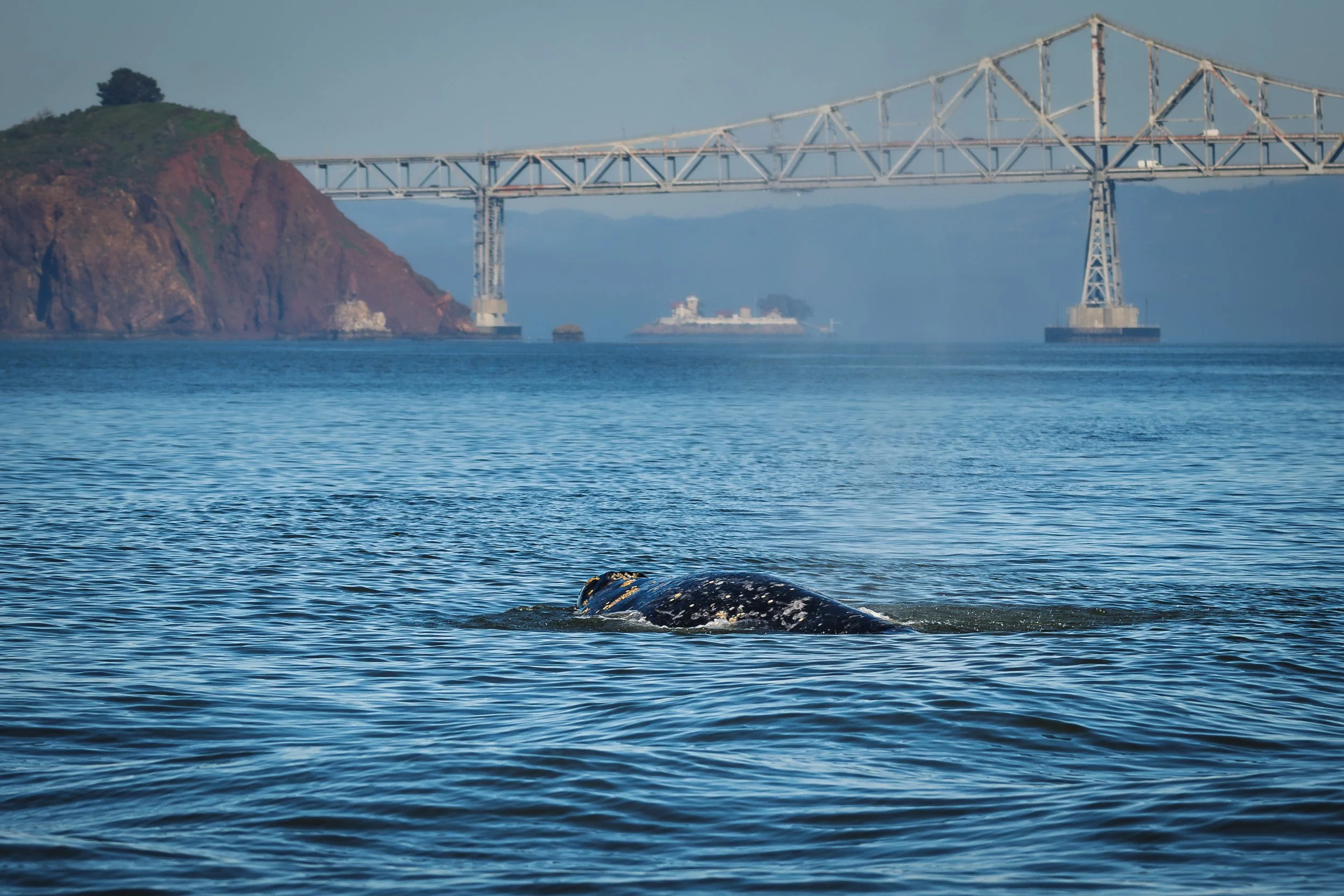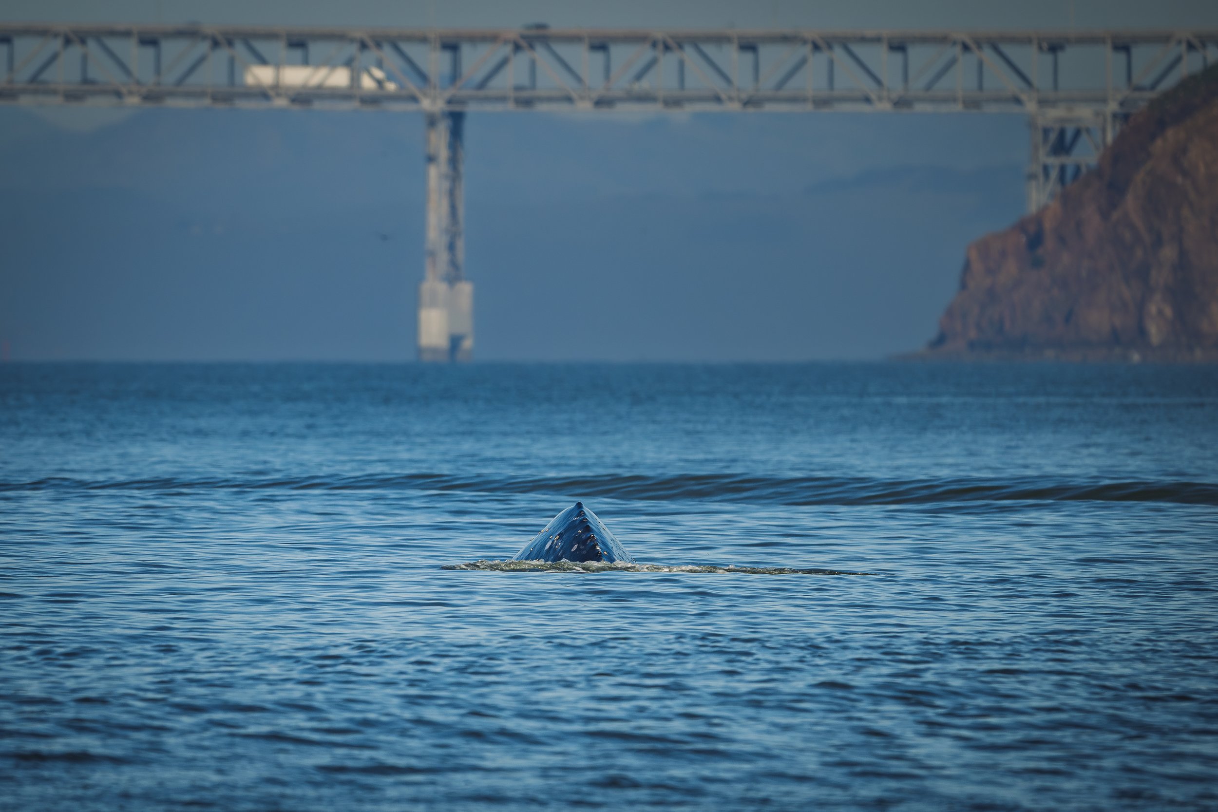 I was on the Kitty Kat with San Francisco Whale Tours to see if we could find the two Gray Whales that had been spotted in the bay. We were successful. It’s not clear if we saw both of the whales, as my photos all appear to be of the same individual. But there were a few times when the whale surfaced within 30 seconds at a distance that I’m pretty sure it couldn’t cover in that time. So it’s possible I just never got a photo of the other whale, but that we saw both. I’ll have a follow-up post with the other critters we saw on the trip. This one is just for the Gray Whales. I focused a bit more on the “environmental” shots to try and highlight the danger these whales are in, being so close to major shipping and other human activities.